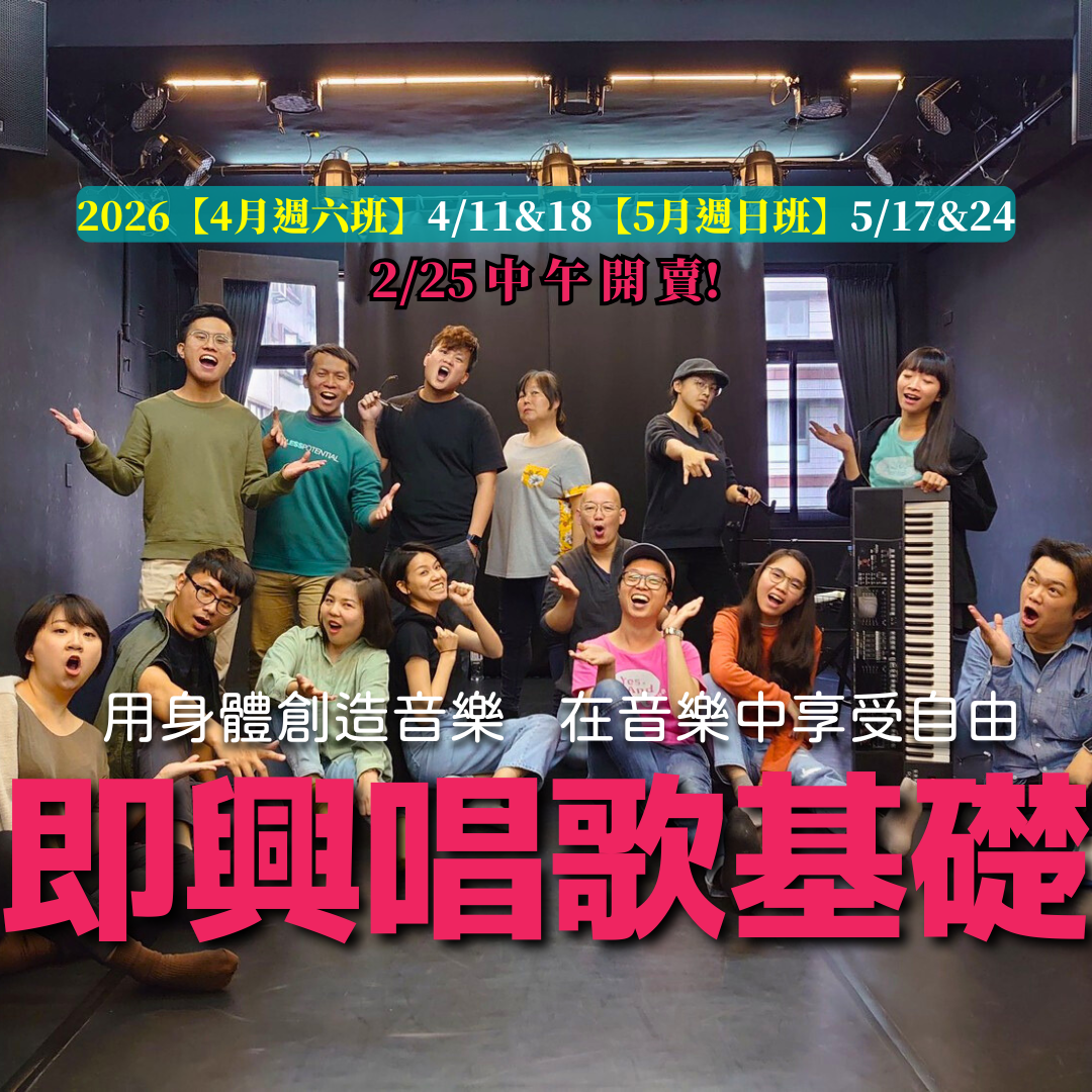 【即興唱歌基礎】4月班、5月班 這個工作坊將著重於用唱歌來探索你的即興創作本能。 教練會帶領大家,從好玩的音樂暖身、聆聽、默契、節奏、押韻訓練開始,享受用聲音即興創作的樂趣。進而與樂手老師搭配,唱出獨一無二的即興歌。 我們相信用身體創造音樂,在音樂中享受自由,是老天給我們每個人的美好天賦。 2/25中午開賣!