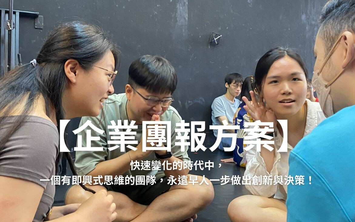 是一個完整的方案,從團隊建立→即興劇練習→引導反思→應用探索→舞台實戰,陪伴你把即興方法練成能力,並透過1對1教練,引你找到個人化的應用場景與方式。